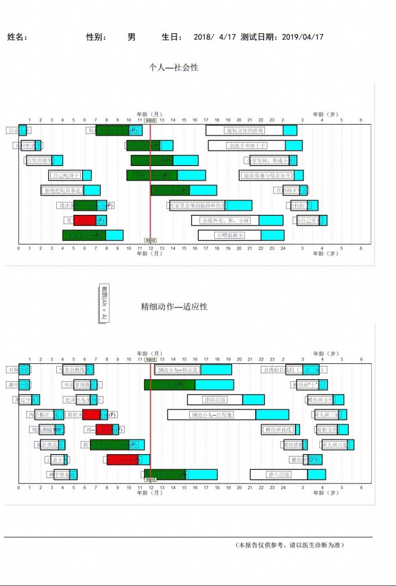 2、按照完成每個項目人數(shù)的25%、50%、75% 和90%作為標準,將被查兒童與常模相比較,初步了解兒童的發(fā)育狀況。例如在某個年齡階段,90%的兒童都能掌握某項技能,而某被查兒童卻不能掌握,這一測驗結果表明該兒童在這方面的發(fā)展可能遲滯。通過一系列項目的測驗,丹佛發(fā)育篩查測驗能提供許多關于兒童心理發(fā)展狀況的有價值的信息。